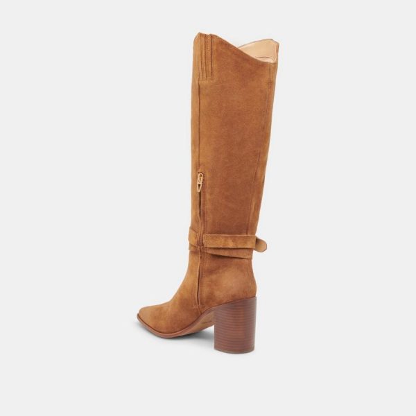 TYRONE is understated and timeless. This knee-high boot’s block heel, pointed toe, and ankle strap give just enough detail to stand out. Pair this style over jeans or with slitted sweater dresses.