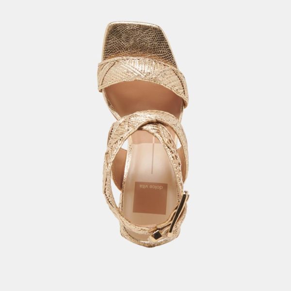 FINNY DECO steps it up with both texture and shine. You’re not likely to go unnoticed in her extra high block heel and thicker metallic woven straps. Style this statement heel with all your girl’s night out looks.