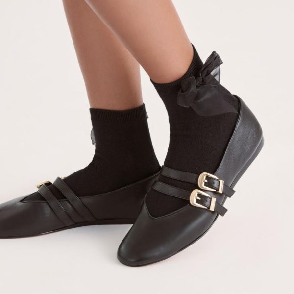 The Bow Anklet Socks bring just the right touch with their delicate bow detail and flirty anklet fit. Available in classic black or white, they’re the perfect finishing touch for anything from ballet flats to loafers.